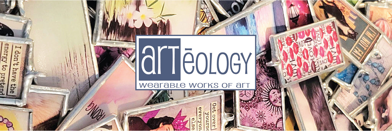 Highly recommend ARTeology for their unique, captivating and durable designs. I have two pieces that are actually necklaces. I am a lifetime fan of The Wizard of Oz. The first piece I purchased has Dorothy's ruby slippers on the front and the wicked witch on the back. The second was gifted to me by my dear friend Wendy, who had it custom designed. It is Dorothy and Toto on the front and my business name and logo on the back. Since the pieces are reversible I actually have four different looks. Looking for something completely different, check out ARTeology.